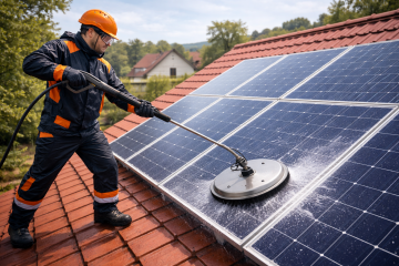 Znečištěné solární panely mohou výrazně snížit účinnost celé fotovoltaické elektrárny. Odborné čištění solárních panelů na rodinném domě odstraňuje usazeniny, které brání průchodu slunečního záření. Díky pravidelné údržbě dosahují solární panely stabilního výkonu po celý rok.